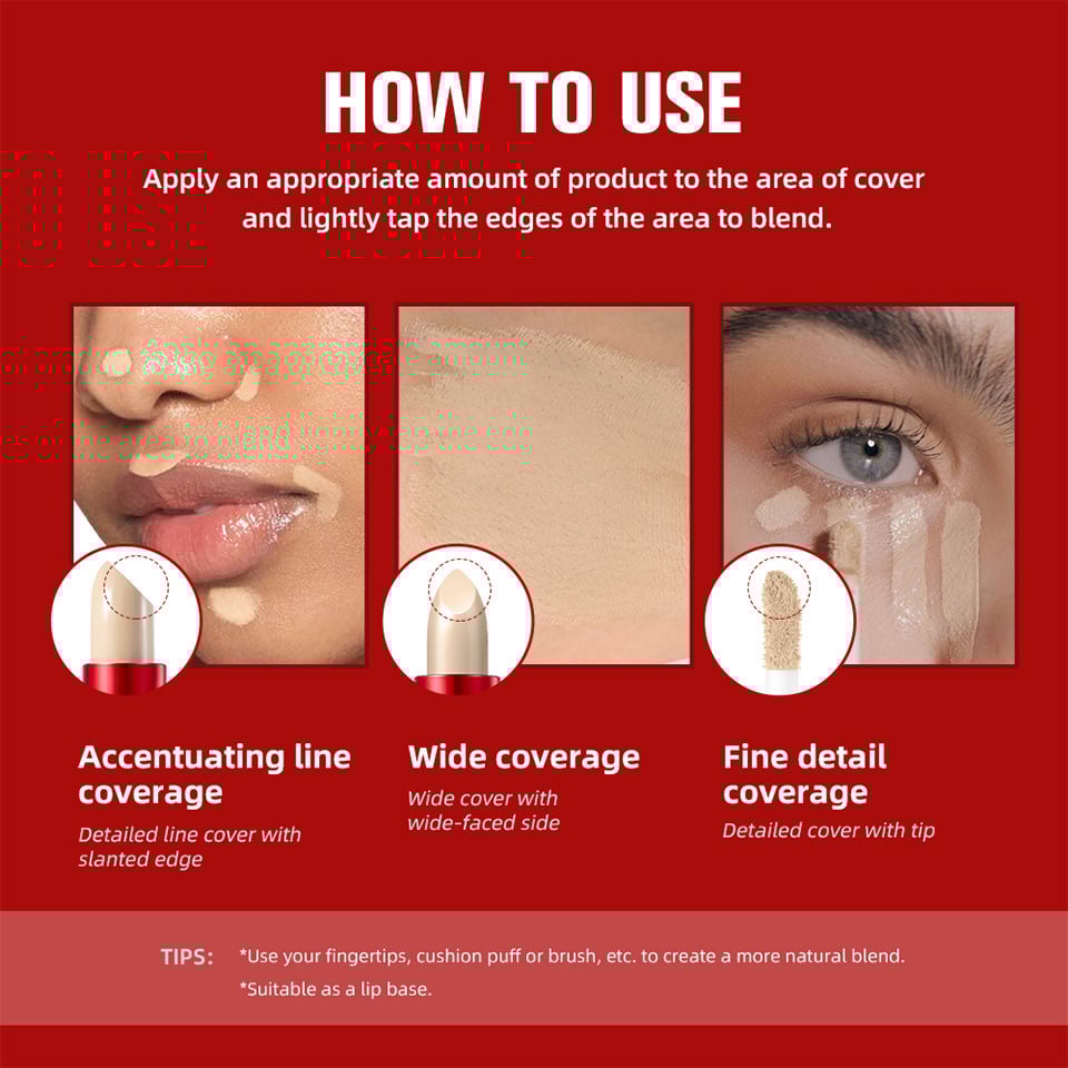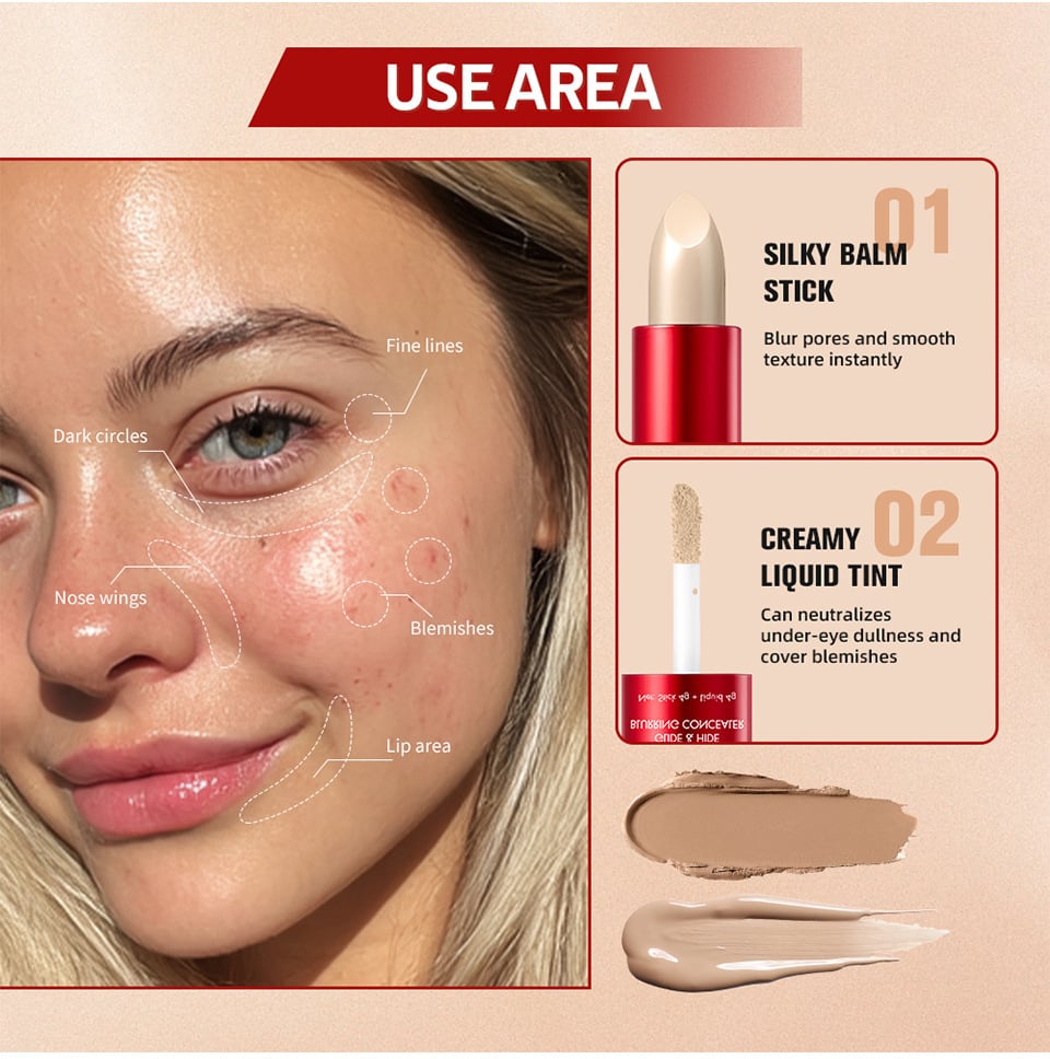 ✨Dual-action design: Solid stick (for broad coverage) + liquid tip (for precise concealing)💄
