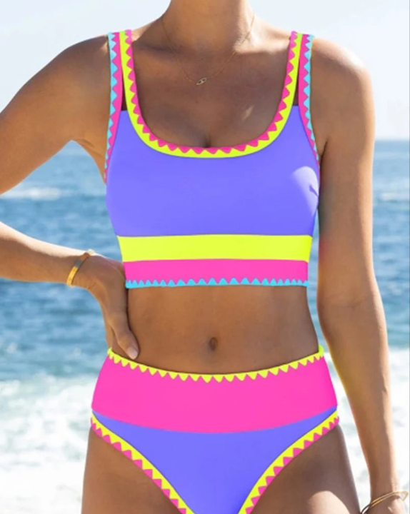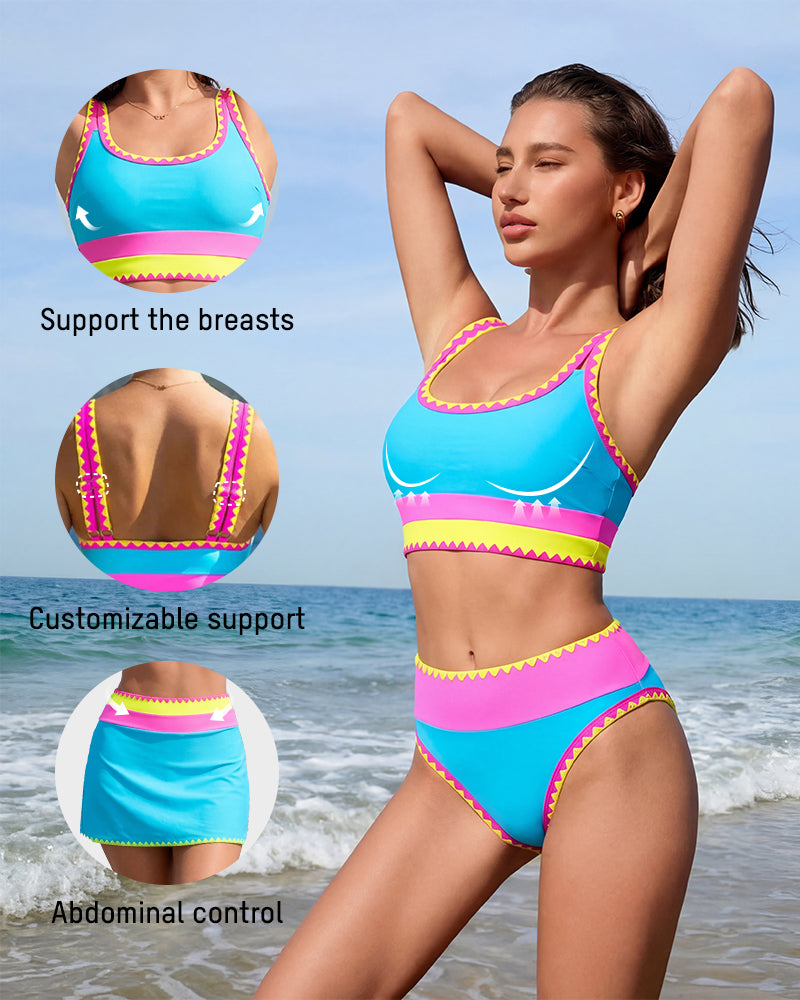 A lifting top, adjustable straps, and a high‑waist double‑layer bottom work together to define curves and balance proportions.